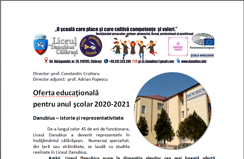 Prima pagină Prezentare Promovarea liceului Oferta de școlarizare în 4 pagini ;)