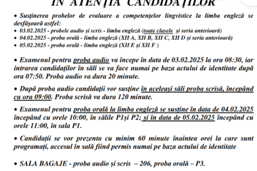 Repartizare candidați – Proba C – Competențe lingvistice în limba engleză