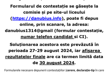 Anunț contestații Bacalaureat – sesiunea august 2024