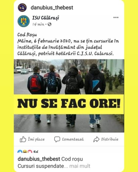 Vineri, 7 februarie 2020, se reiau cursurile în Liceul Danubius.