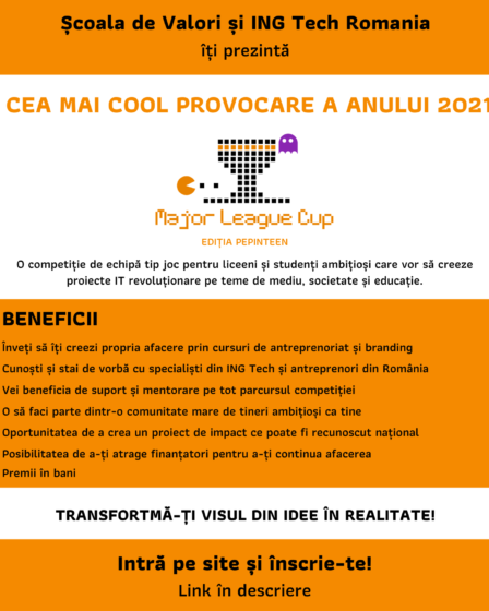 Aveți la clasele dumneavoastră elevi sau studenți care vor să schimbe lumea? Acei tineri preocupați de mediu și poluare, de problemele societății, ba chiar de schimbarea sistemului educațional? Atunci vă invităm să le spuneți despre Major League Cup Pepin Teen, o competiție prin joc pe care am dezvoltat-o pentru toți elevii și studenții din țară. Îi așteptăm să se înscrie …