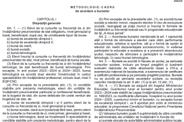 Art. 10 alin. (1) Bursele de merit se acordă elevilor care au rezultate deosebite la învățătură și se încadrează în cel puțin unul din cazurile următoare: