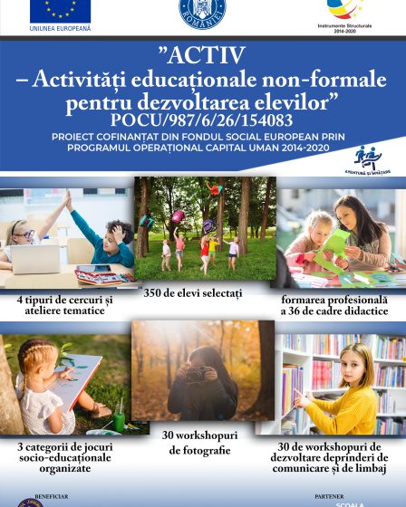 “ACTIV – Activităţi educaţionale non-formale pentru dezvoltarea elevilor”, POCU/987/6/26/154083 Campanie de informare și conștientizare cu privire la activitățile educaționale nonformale desfășurate în cadrul proiectului #Danubius#the_best#proiect_european Vezi albumul foto