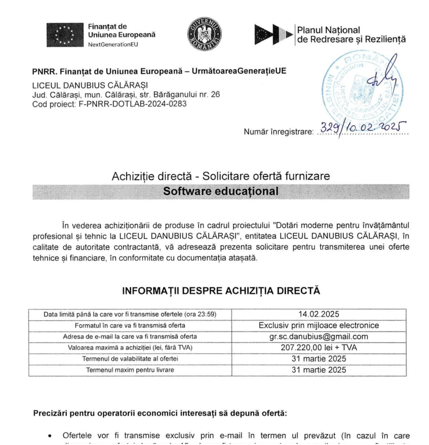 Proiecte europeneAnunț achiziție Materiale didactice și cărți/ papetarie și birotică/ materiale consumabile