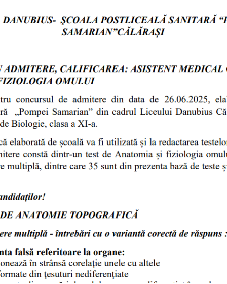 Continuăm înscrierile pentru anul școlar 2025-2026 la Școala Postliceală Sanitară. Școala Postliceală Sanitară „Pompei Samarian”, din cadrul Liceului Danubius Călărași, vă așteaptă pentru înscrieri la specializările Asistent Medical Generalist (2 clase, 56 locuri-buget) și Asistent Medical de Farmacie (1 clasă, 28 locuri-buget)-calificări acreditate, cursuri fără taxă, diplome recunoscute în țară și străinătate. Se pot înscrie …