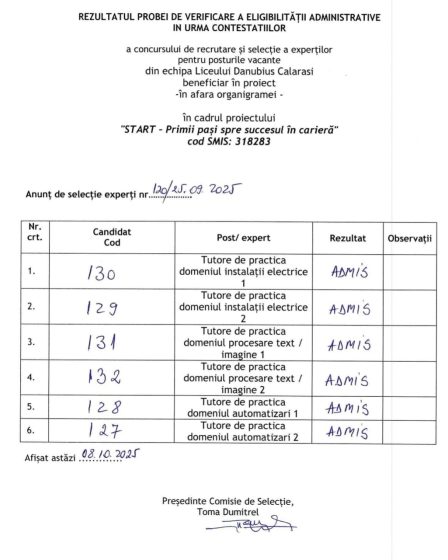Fără categorieRezultate contestații – proba de eligibilitate administrativă – „Start” Primii pași în carieră