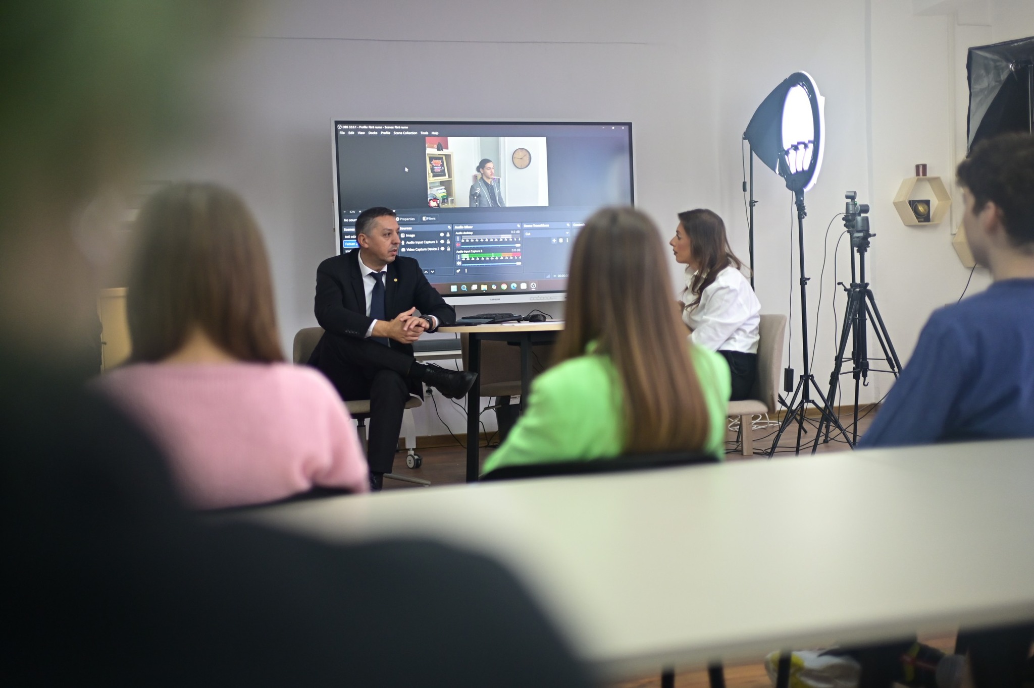 Elevii i-au trimis o invitație directă, la propriul lor podcast, „În banca din spate”. Răspunsul ministrului a fost afirmativ. În studioul lor, liceenii au avut exclusivitate totală: întrebările și dialogul au fost gândite și conduse de ei, construite cu sinceritate și curaj. Adulții au făcut un pas în spate, ghidând subtil procesul, pentru ca discuția să rămână liberă, autentică și centrată pe vocile tinerilor.