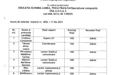 Proiecte scolare Educația schimbă lumeaRezultate finale – selecție și recrutare – Educația schimbă lumea