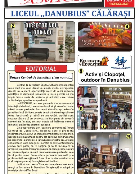 Elevii jurnalisti din cadrul CESCUJUR au finalizat cel mai nou numar al ziarului Amicii, publicatie a Centrului Scolar si Cultural de Jurnalism. Beneficiind de o consistenta pregatire teoretica, dar si de mentoratul si logistica necesare activitatii practice, ei sunt singurii autori ai acestui ziar, reusind sa parcurga toate etapele necesare, de la organizarea continutului, …