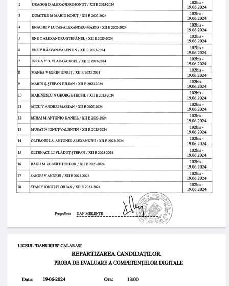 Repartizarea candidaților – Probele A, C, D – Examenul de Bacalaureat – august 2024