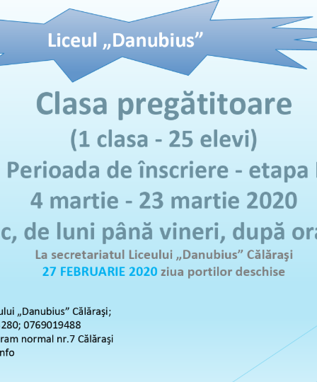 Invitație de înscriere în clasa pregătitoare la Liceul Danubius