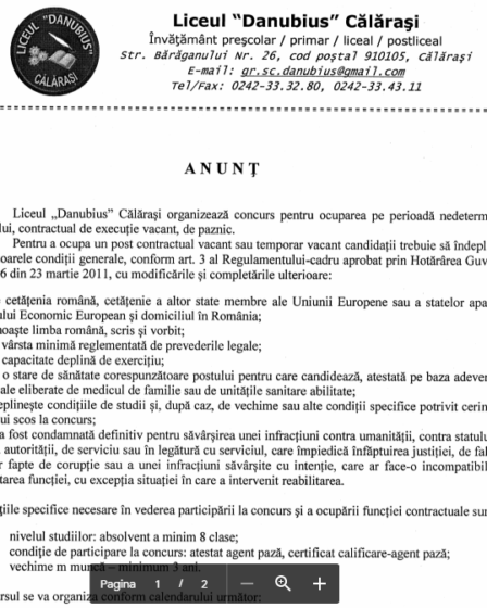 Începând de marți, 22.02.20222, doamna prof. Elena Stanciu Dinu a fost numită cu delegație în funcția de director al Liceului Danubius. De la aceeași dată, delegarea pe funcția de director a doamnei prof. Daniela Măcinic încetează, urmând ca domnia sa să exercite în continuare funcția de director adjunct al liceului.