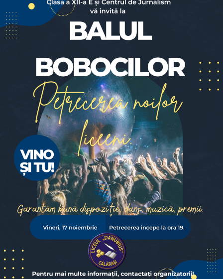 Clasa a XII-a E și Centrul de Jurnalism vă invită la Balul Bobocilor – ediția 2023.