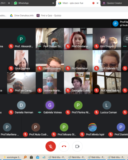 Vineri, 29 ianuarie 2021, începând cu ora 9, s-a desfășurat ședința Consiliului Profesoral din Liceul Danubius. Pe ordinea de zi s-au aflat situația școlară și disciplinară la sfârșitul semestrului I; prezentarea numărului de ore/disciplină pentru încadrarea personalului didactic în anul școlar 2021-2022; aprobarea cererilor privind completarea normei didactice; diverse.