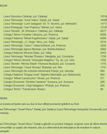 Liceul Danubius ocupă primele locuri la categoriile Plantare și Târguri, precum și locuri frumoase la celelalte categorii, în cadrul proiectului educațional Ecoprovocarea, proiect susținut de compania Tenaris Silcotub. Îi felicităm public pe ecoambasadori, pe profesorii îndrumători și pe elevii participanți. Mai jos pot fi urmărite și materiale realizate de elevi în această perioadă. Datele au …