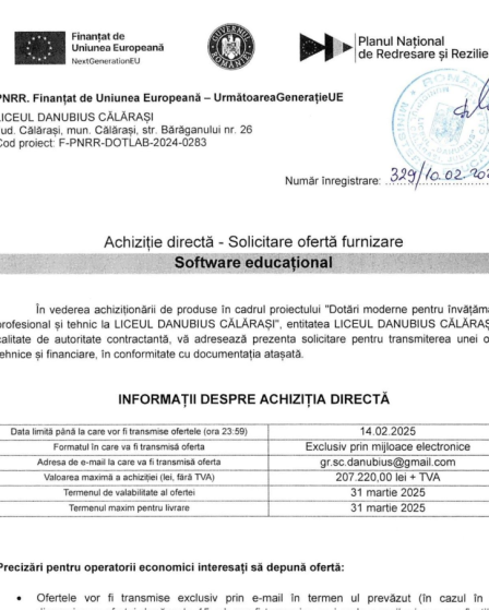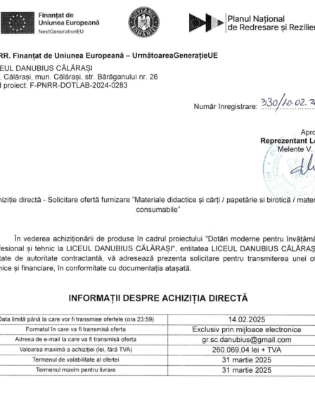 Un nou proiect cu finanțare europeană depus de către Liceul Danubius Călărași… Să fie cu succes! #PEO#Danubius#dezvoltare