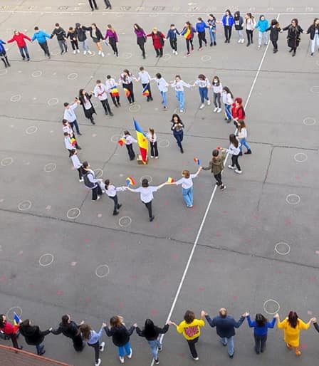 Flashmob #Hora_Unirii Elevii și profesorii, alături de conducerea liceului Danubius, au marcat Mica Unire, îmbrăcați în costume tradiționale și culorile tricolorului. Dincolo de aparențe, vorbim aceeași limbă, simțim și gândim la fel.