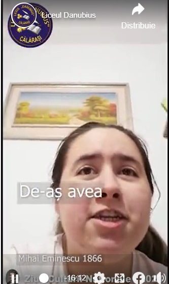 Am omagiat 173 de ani de la nașterea marelui poet Mihai Eminescu prin recitări de poezie și cântece-activitate susținută de doamna profesor Drumea Aurelia în colaborare cu doamna bibliotecar Bucur Elena. Director prof. Dan Melente