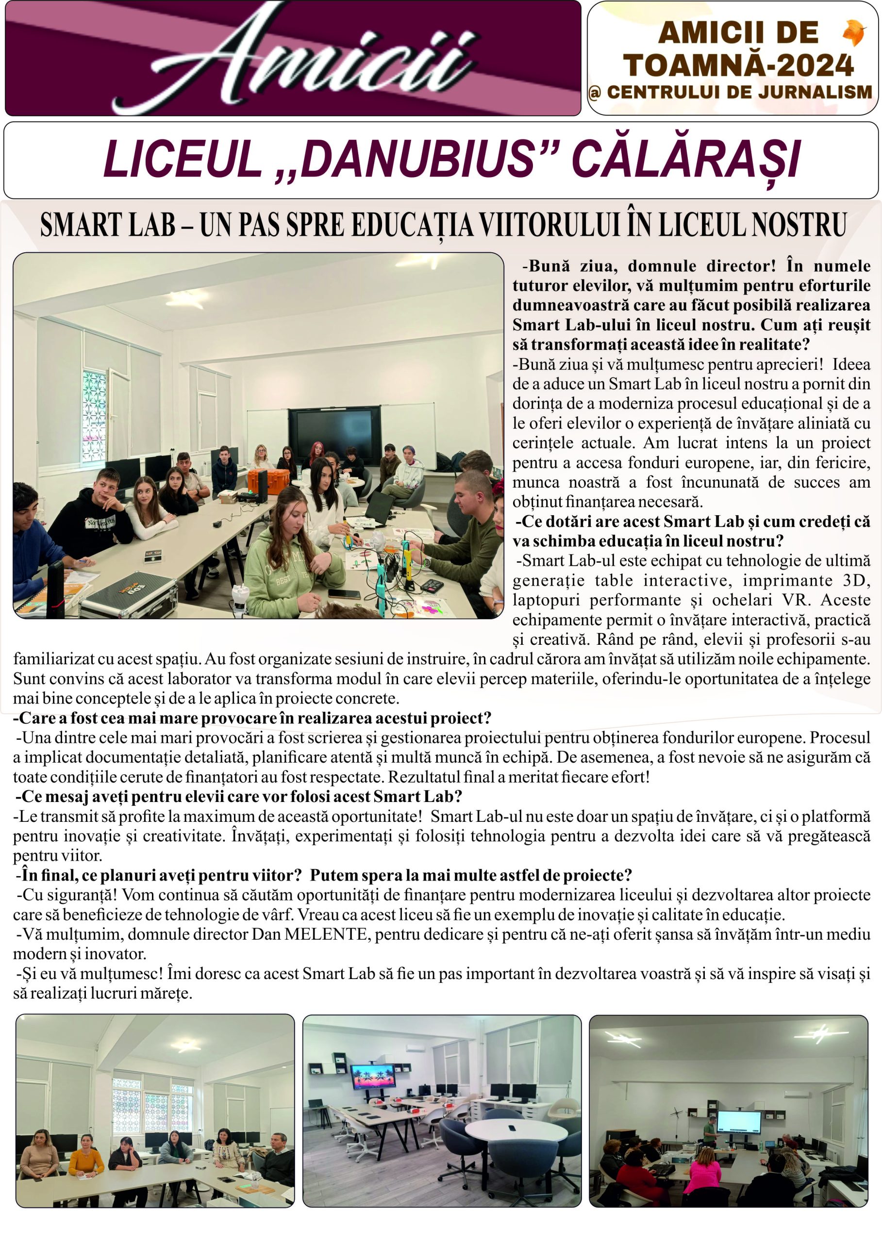 – Bună ziua, domnule director! În numele tuturor elevilor, vă mulțumim pentru eforturile dumneavoastră care au făcut posibilă realizarea Smart Lab-ului în liceul nostru. Cum ați reușit să transformați această idee în realitate? – Bună ziua și vă mulțumesc pentru aprecieri! Ideea de a aduce un Smart Lab în liceul nostru a pornit din dorința …