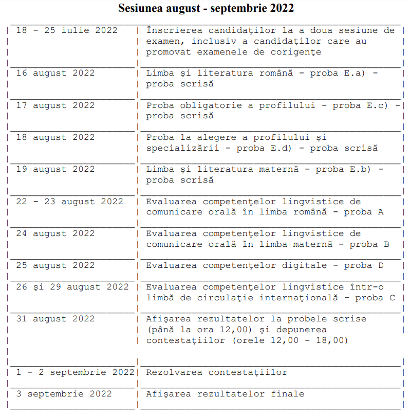 Informații utile pentru candidații la Examenul Național de Bacalaureat – Sesiunea august 2022